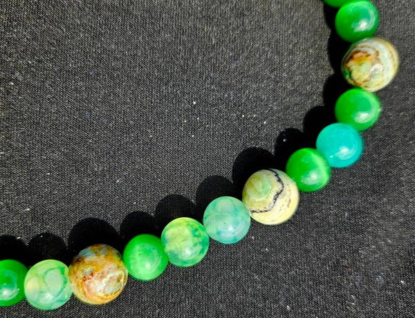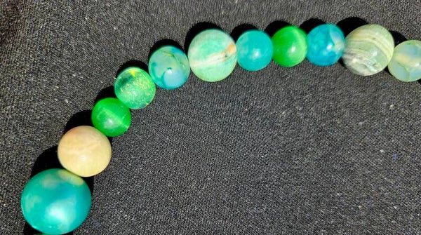 Beads are Stone and Glass strung on extremely strong elasticated.